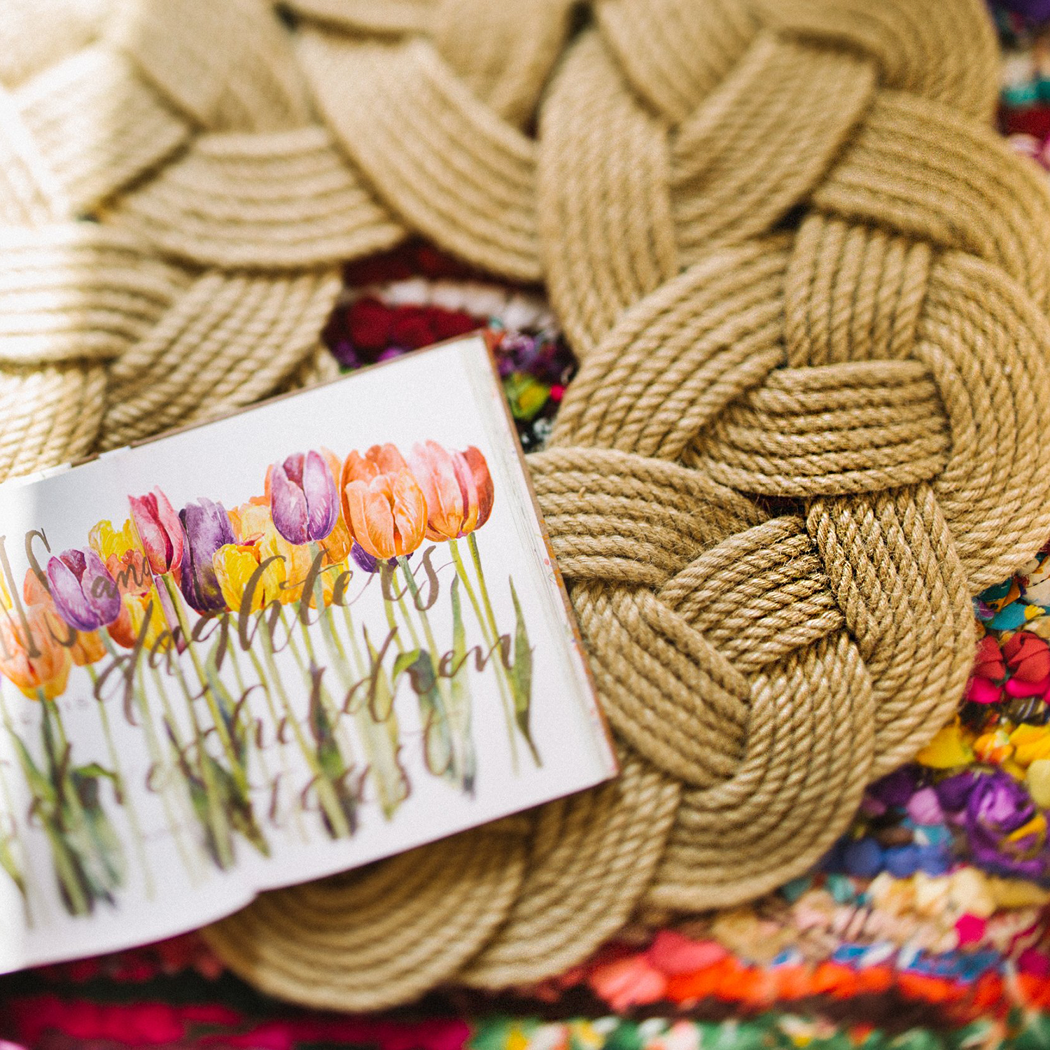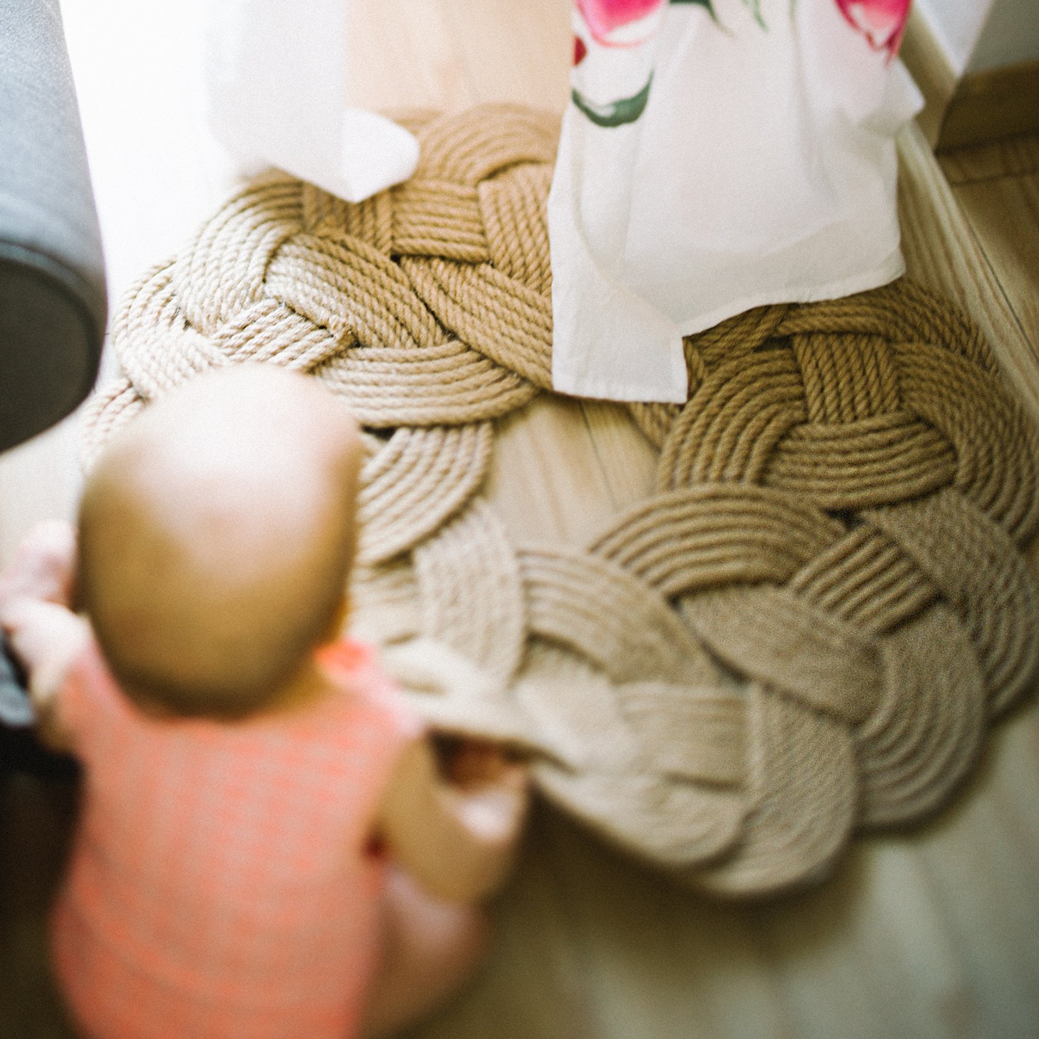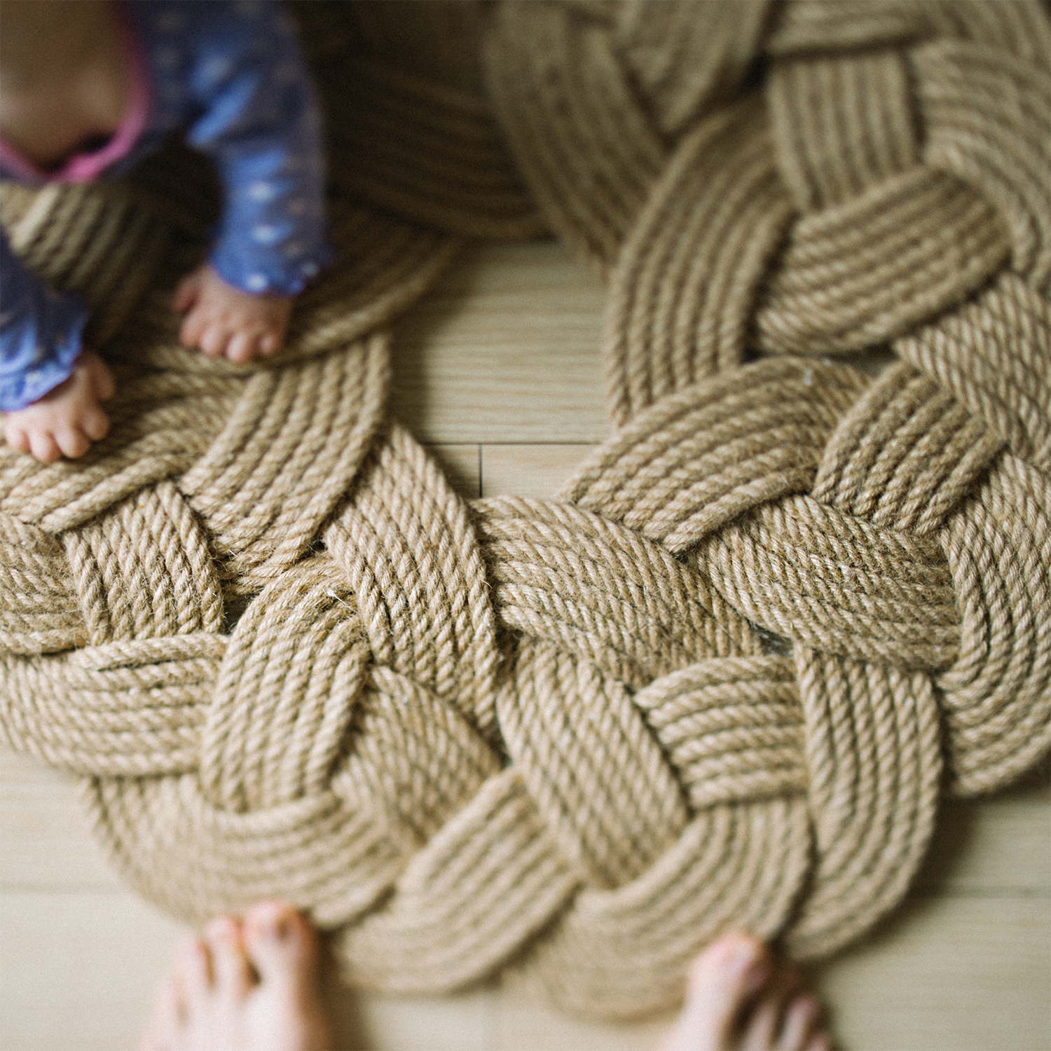 This small circle knotted rug is one of our personal favorites. It is made from a single strand of new 12mm jute rope. The rug is 26 inches in diameter.